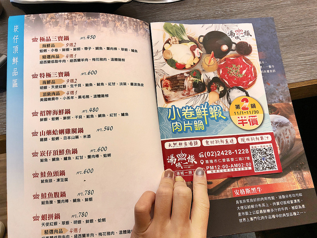 10月主打小卷蛤蜊肉片鍋第二鍋半價,一鍋450$,第二鍋225$。(每個月幾乎都有活動喔)